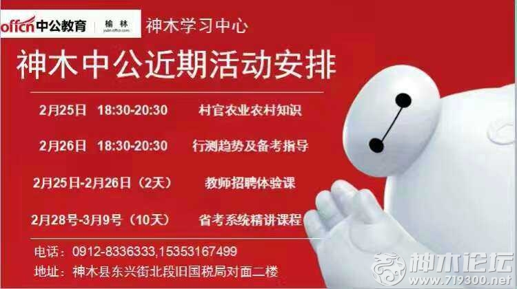 神木中公教育2017年陕西省考2月28日开课啦!! 10天系统精讲课程(4天申论,6天行测)价格2680元 电话:0912-8336333 15353167499 地址:神木县东兴街北段旧国税局对面二楼(中公教育) 可以乘坐1路,2 ...