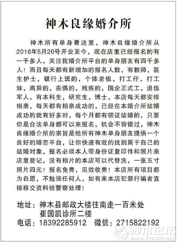 今日征婚,男,33岁,未婚,本地人,有车有房(房在新村),结婚再买新车,国企正式工,父母健在,大专学历,身高171,希望找个互相合得来的女士结婚,今年就可以结婚的,不想再拖了,已经在神木良缘婚介所登记报名 ...