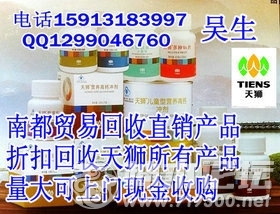 欢迎致电:159-1318-3997QQ129-904-6760详情咨询吴生,我司在全国各地无限量收购无限极产品,求购中脉产品,几折回收完美安利产品。折扣求购玫琳凯产品。长期回收如新三生产品。 我司在大江南北长期收购无限极中脉 ...