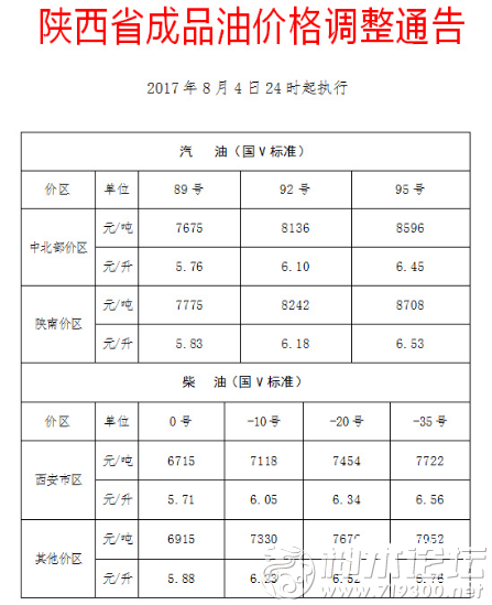 笔者从陕西省物价局官网上了解到,从2017年8月4日24时起,陕西省汽、柴油价格相应上调。 据了解,90号汽油每升上调0.13元,92号汽油每升上调0.14元,95号汽油每升上调0.15元,0号柴油每升上调0.14元。 ...