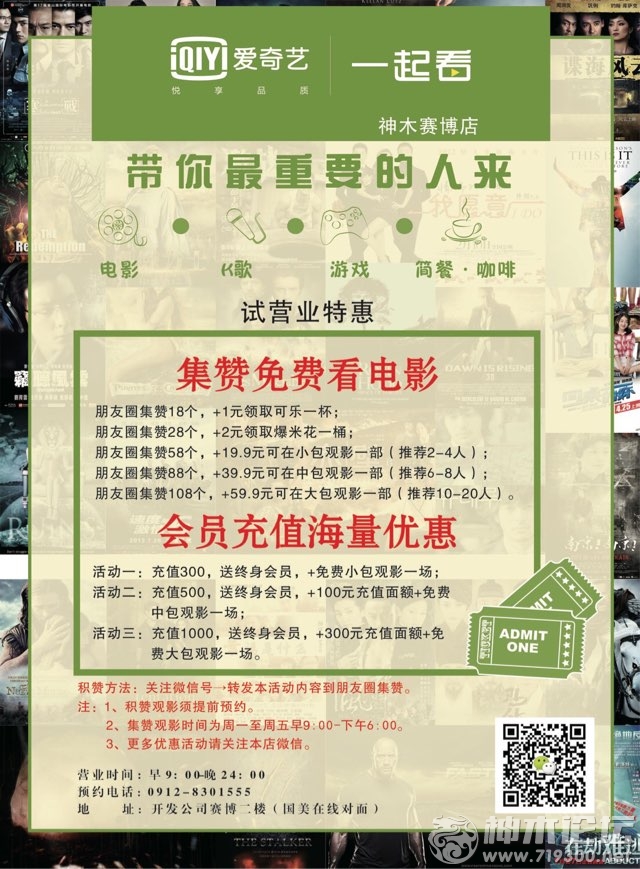 爱奇艺一起看私人影院开始试营业了! 加微信转发活动19.9全家观影