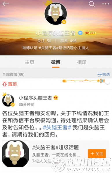 那么对于此次小游戏“头脑王者”被暂停服务的消息,你有什么看法?欢迎大家来下方评论区讨论。 来源:二三里