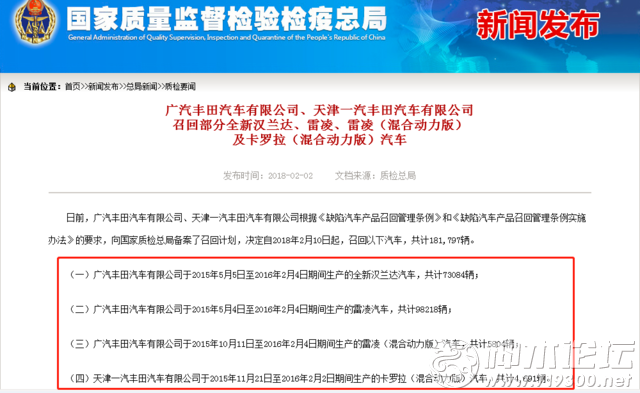 近日,国家质检总局发文:汉兰达、雷凌、卡罗拉召超18万辆车因存在安全隐患被召回。召回原因是:空气囊控制系统中装配了问题批次的加速度传感器,该批次加速度传感器内IC芯片的生产条件不恰当,造成在车辆使 ...