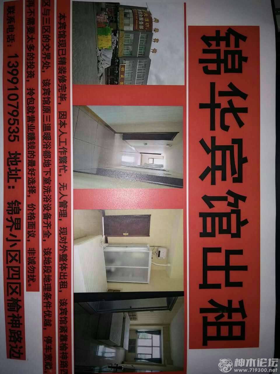 锦界镇锦界小区四区,榆神路锦华宾馆出祖,刚装修完毕,