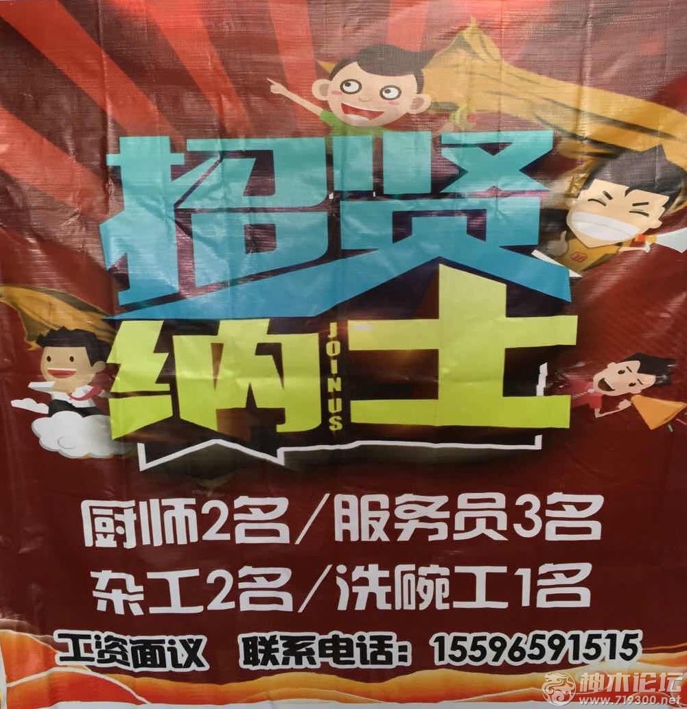 夜市厨师2名、服务员3名、杂工2名、洗碗工1名、工资面议!!!地址:店塔广场附近/::15596591515
