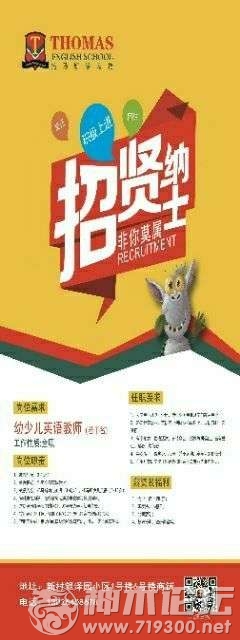 托马斯学习馆招聘: 1.教学主管1名 2、幼少儿英语老师 3、课程 ...