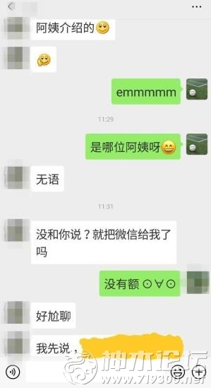 本帖最后由 是哇哈哈哈 于 2019-5-27 19:29 编辑 上午突然有个人加我,说是介绍相亲的妹子,因为我确实没有听谁跟我提过,所以也不知是真是 但由于之前有过几个相亲对象在我不知情的情况下直接加我 ...