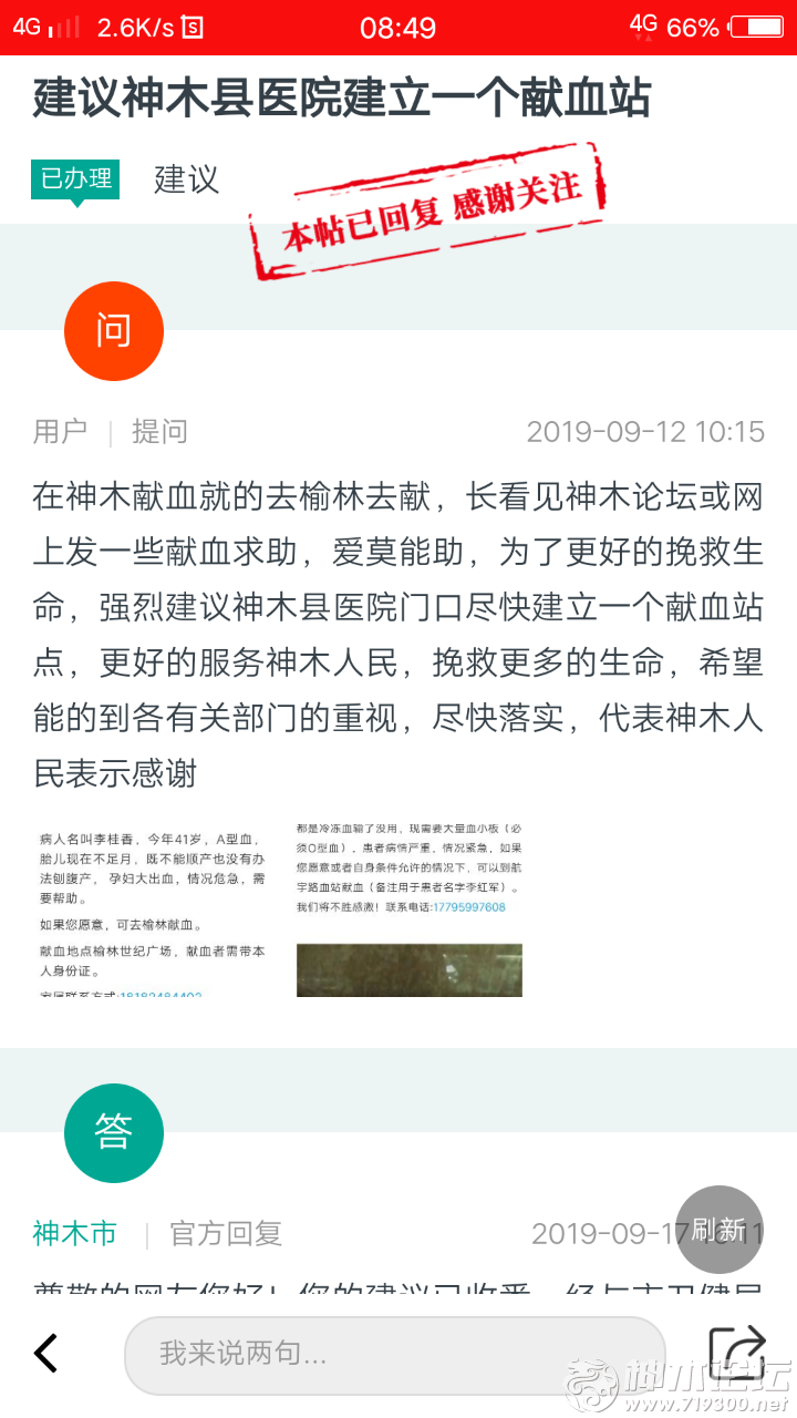 论神木县医院应不应该建立一个献血站,以下图片是官方回复的内容,《适时》在神木建立采血点,就不能建立一个长期的献血站嘛?神木人民大家评论下。