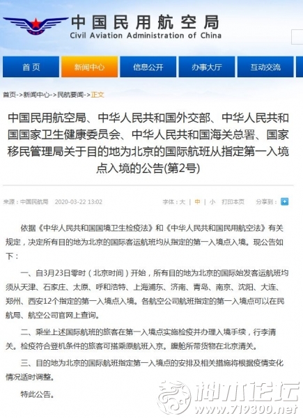 3月22日,民航局、外交部、国家卫健委、海关总署、移民管理局联合发布公告称,决定所有目的地为北京的国际客运航班均从指定的第一入境点入境。 中国国际航空部分航班、阿联酋阿提哈德航空第一入境点为 ...