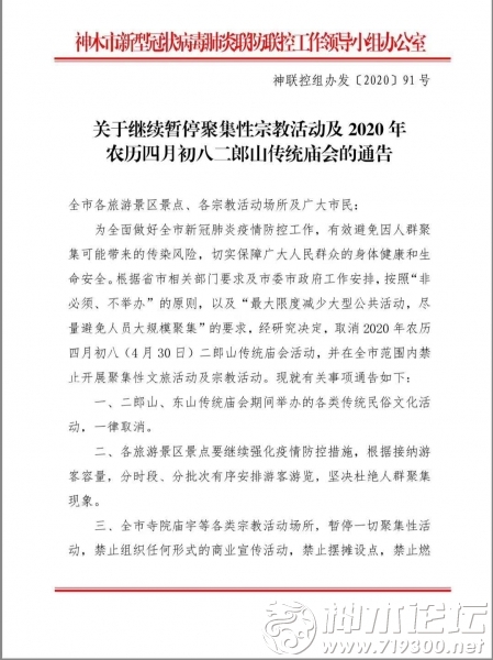 确定!神木四月初八二郎山庙会取消,全市禁止聚集性文旅 ...