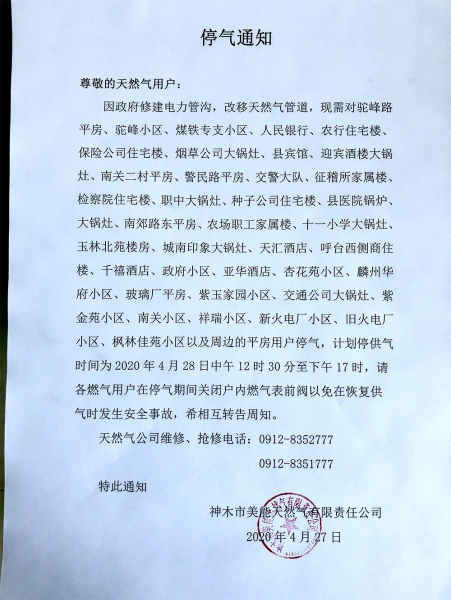 停气通知|4月28日神木多区域将停气,停气期间用户需关燃 ...