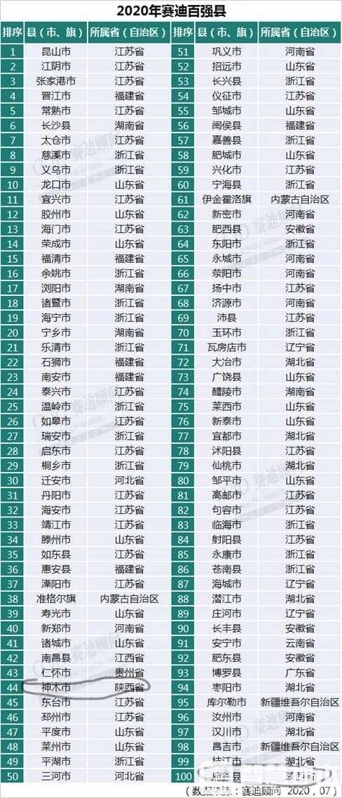 7月28日,在“2020年全国县域经济创新发展论坛”上,由赛迪顾问县域经济研究中心编制的《2020中国县域经济百强研究》(下称报告)正式发布,其中,榆林市的神木市、府谷县分别位列全国百强县第44位、第100位。 ...