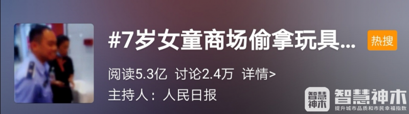 本帖最后由 神木百晓生 于 2020-8-4 09:11 编辑 一条“7岁女童商场偷拿玩具亲妈报警”的新闻上了微博热搜。截至8月3日23:00,该话题阅读5.3亿,讨论2.4万。 近日,广东佛山南海警方接到一位母亲报警称 ...