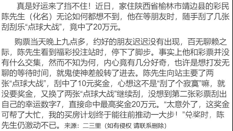 榆林小伙买 彩 票打发时间刮中20万元头奖!