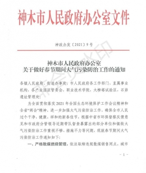 神木市关于做好春节期间大气污染防治工作的通知!