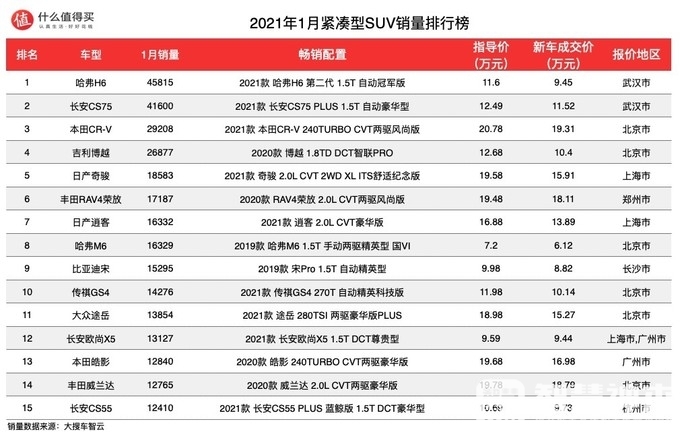 今天我们一起来看看各个细分车系中的销量排行1.紧凑级SUV 来源:车榜单