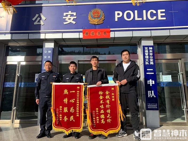 拾金不昧好市民 近日,神木市民宋海顺在东兴街一家银行附近停车时,捡到现金五万多元,他在原地等待失主认领无果后迅速来到继业路派出所报案,最终在民警协同努力下找到了失主。失主为表示感谢特地送来了锦旗。 ...
