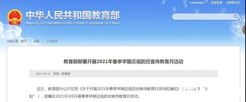 本帖最后由 大咖 于 2021-3-15 11:45 编辑 近日,教育部办公厅印发通知,部署在2021年3月开展春季学期近视防控宣传教育月活动。 此次宣传教育月活动主题为“共同呵护好孩子的眼睛,给他们一个光明的未来” ...