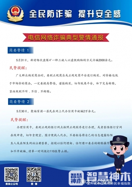 简 要 警 情5月31日,新村杨伙盘煤矿一职工被人以虚假购物的方式诈骗2000余元。民 警 提 醒广大群众购买商品时,要到正规商店或正规电商平台进行购买,对价格远低于市场价的商品,一定要提高警惕,谨慎购买, ...