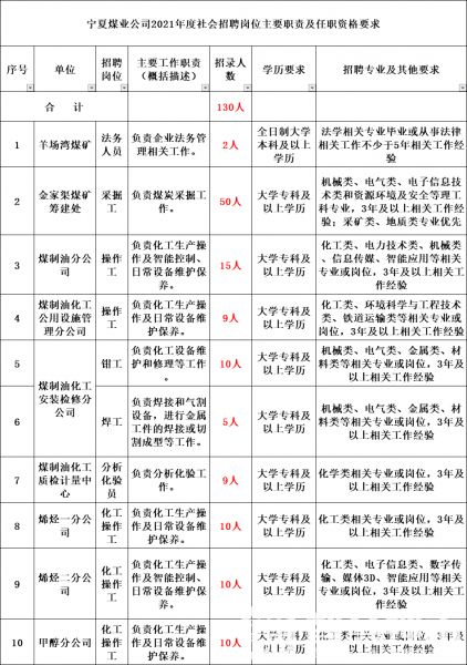 国家能源集团宁夏煤业公司2021年社会招聘公告国家能源集团宁夏煤业有限责任公司是集团公司控股、与宁夏回族自治区人民政府合资合作组建的煤炭、煤制油化工综合能源企业,注册资本211.1亿元,其中集团公司占股51%, ...