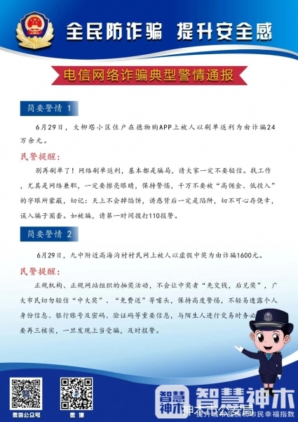 # 第132期 # 电信网络诈骗警情通报 01简 要 警 情 6月29日,大柳塔小区住户在德物购APP上被人以刷 单 返利为由诈骗24万余元。 ★民 警 提 醒★ • 别再刷 单 了!网络刷 单返 利,基本 ...
