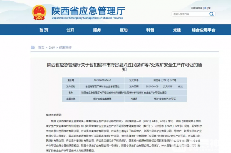 本帖最后由 神木百晓生 于 2021-8-16 10:19 编辑 陕西省应急管理厅关于暂扣榆林市府谷县兴胜民煤矿等7处煤矿安全生产许可证的通知。 西部网榆林讯(记者 李明) 近日,陕西省应急管理厅下发通知,要求暂扣府 ...