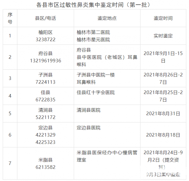 从2021年8月12日起,榆林市将过敏性鼻炎纳入城镇职工门诊慢特病管理,统筹基金按80%比例报销,年度支付限额2000元。8月25日,榆林市医疗保障局公布了第一批7个县区的过敏性鼻炎集中鉴定时间。 为方便过敏性鼻炎参保 ...