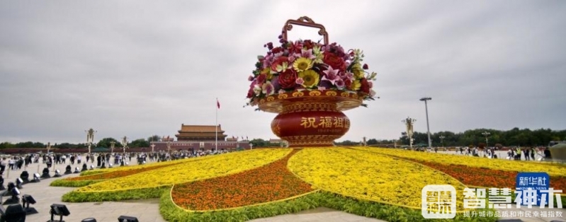 9月25日在天安门广场上拍摄的18米高的“祝福祖国”巨型花篮。 当日,为迎接国庆节到来,北京天安门广场18米高的“祝福祖国”巨型花篮以及长安街沿线的10处各具特色的主题花坛正式亮相。天安门广场中心的 ...