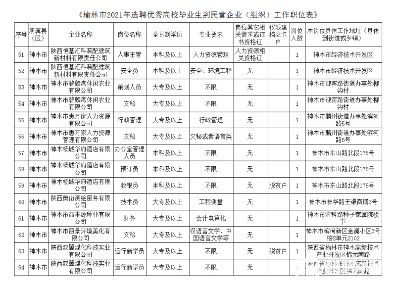 榆林市工业和信息化局关于2021年选聘优秀高校毕业生到民营企业(组织)工作的公告 为进一步促进全市民营企业(组织)健康快速发展,缓解企业(组织)人才短缺问题,根据《榆林市工业和信息化局关于印发〈2021年选聘 ...