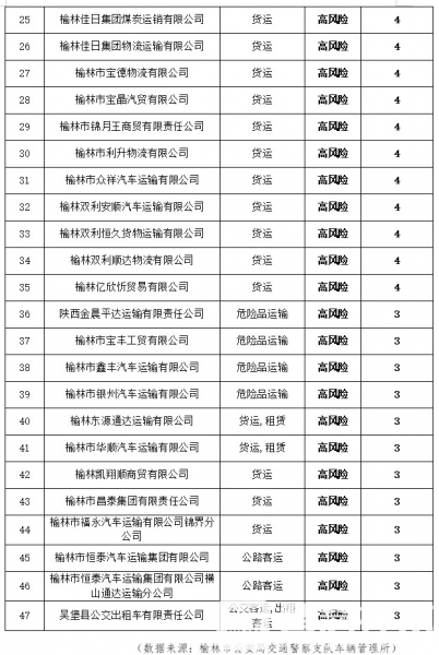 三秦都市报—三秦网讯 为了切实消除道路安全风险源头隐患,有效预防和减少道路交通事故,近期,榆林公安交管部门对全市近4个月(2011年11月—2022年2月)多次被平台评定为高风险等级的运输企业进行了梳理。经过排查 ...