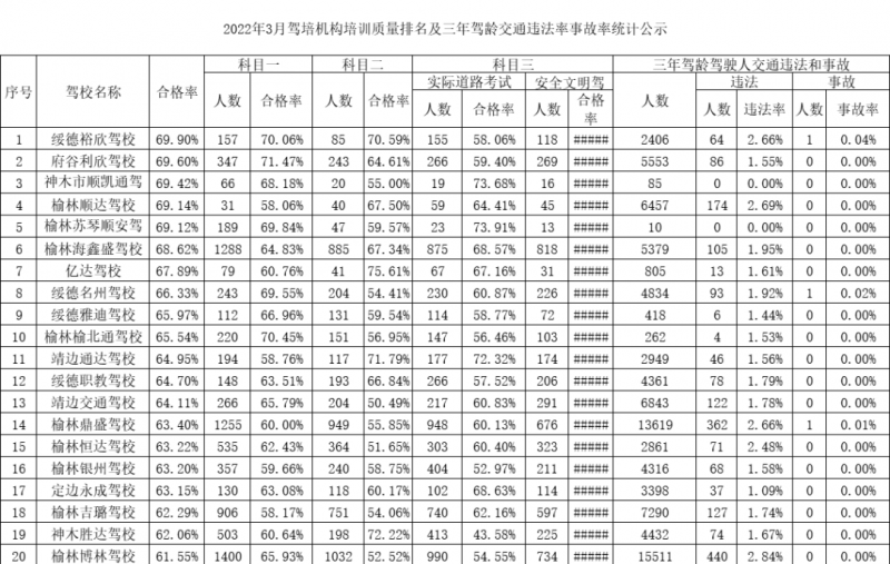 @神木人,速戳!榆林报驾校前必看!全市驾校驾考通过率通报!