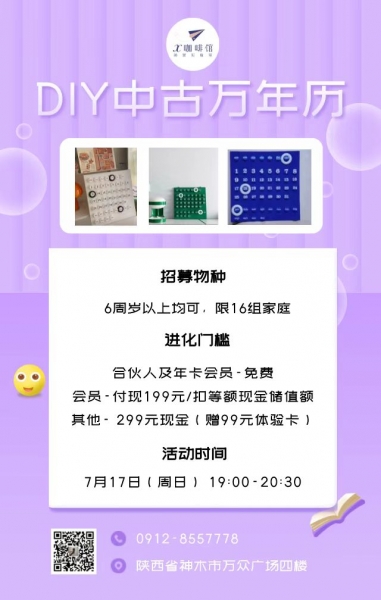 周末宅在家不是玩手机 就是玩手机看到网上很多自制万年历的教程一直没有机会尝试 报名详情咨询下方微信【X咖啡馆&智慧神木】活动集合地想参与活动 但是找不到组织?那就速速加入活动集合群找组织,寻队友了 ...