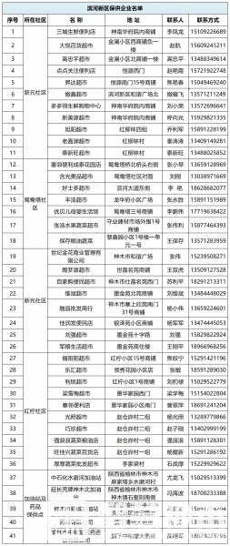 为做好疫情期间生活必需品物资保障工作,满足管控区内居民基本日常生活需求,确保群众采购无忧,滨河新区街道现面向广大居民发布管控区内便民服务指引。 滨河新区保供企业名单