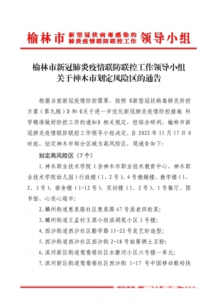 关于神木市划定风险区的通告