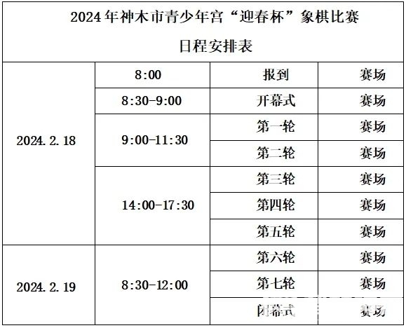 为营造欢乐祥和的节日氛围,响应“黄土魂·神木年”2024年神木市春节系列活动,继承和发扬中华民族的优秀传统文化,提升全市广大青少年的象棋兴趣和水平,现拟举办2024年神木市青少年宫“迎春杯”象棋比赛。 一、主 ...