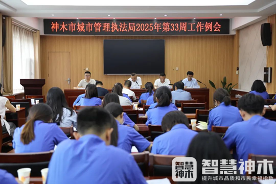 神木市城市管理执法系统工作动态8月11日—8月17日 ● 本周,神木市城市管理执法局召开了2025年第33周工作例会,会上集体学习了习 近 平 总书记在全国生态环境保护大会上的讲话精神,并听取了部分机关干部关于近期工 ...