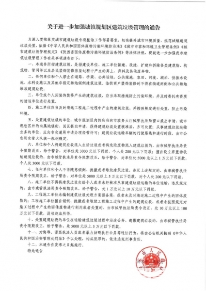 关于进一步加强城镇规划区建筑垃圾管理的通告为深入贯彻落实城市建筑垃圾专项整治工作部署要求,切实提升城市环境质量,规范城镇建筑垃圾处置,依据《中华人民共和国固体废物污染环境防治法》《城市市容和环境卫生管 ...