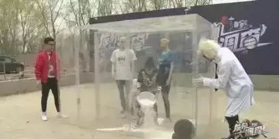在一个亚克力箱里倒上面粉,用鼓风机把面粉吹起来,遥控开启电子打火器,结果亚克力箱瞬间爆炸。