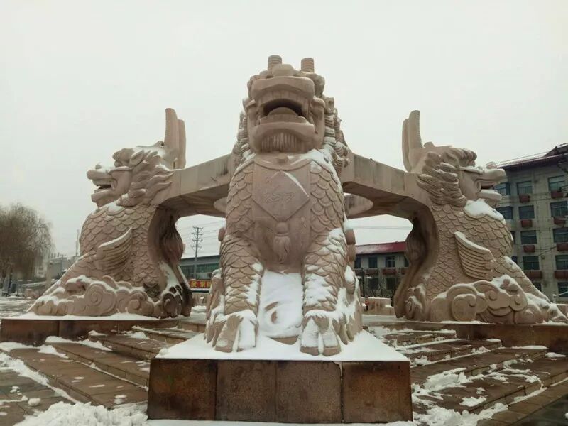 这座雕塑的名字叫做“瑞应石麟”,取“古麟州”和“盛世麒麟现”之意,寓意我市政通人和,各项社会事业繁荣发展。