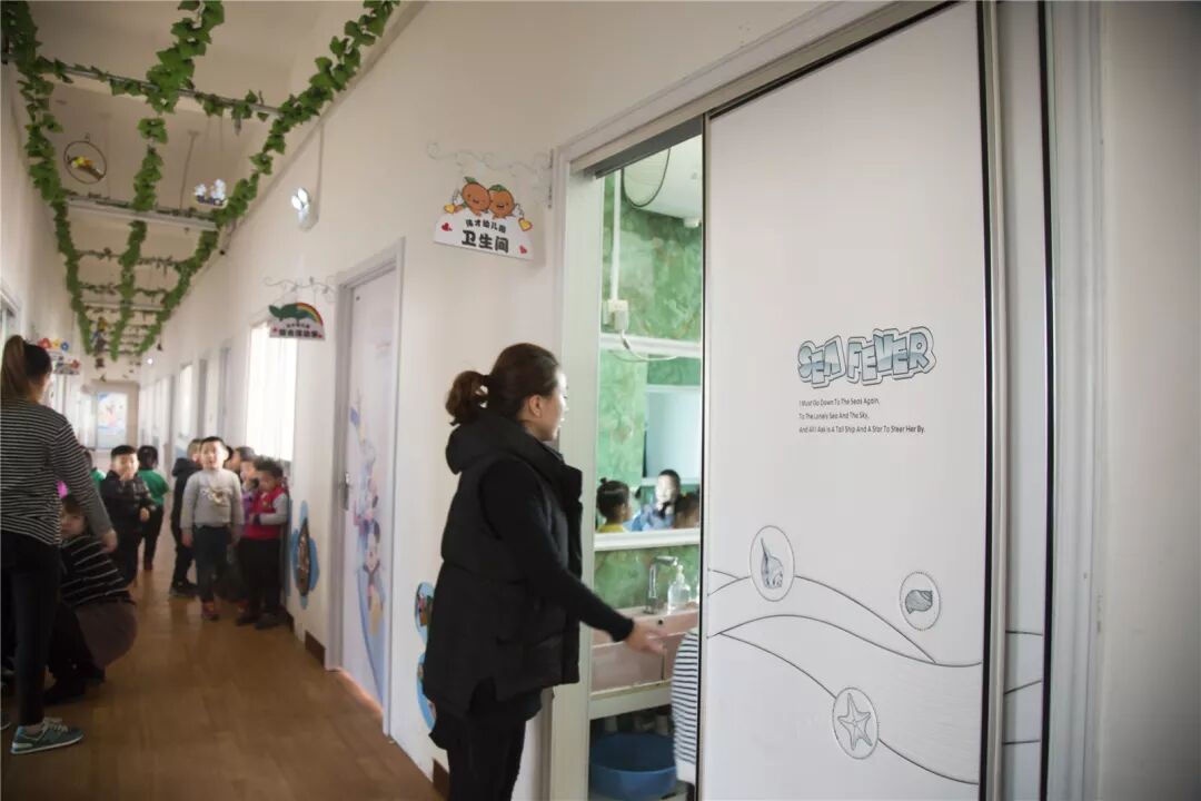 孩子们睡午觉后的第一件事就是上卫生间,老师必须协助孩子们上卫生间,整理衣服。