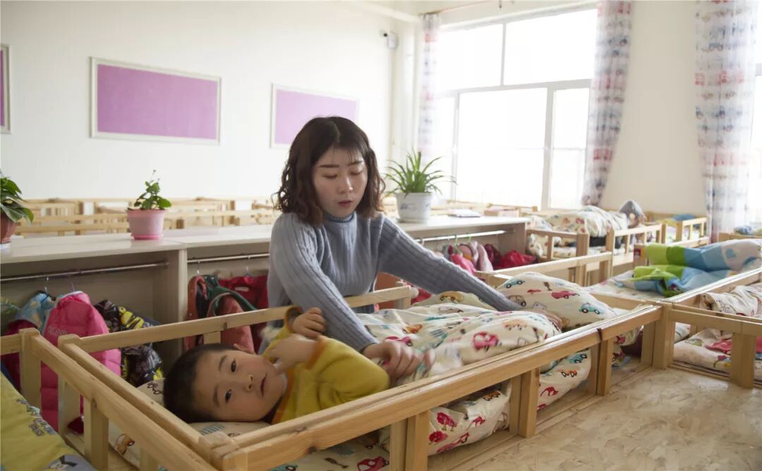 到了孩子们睡午觉的时候,老师要给小班的孩子们脱衣服、鞋袜,给他们一个个的盖好被子,遇到哭闹或是睡不着的孩子还需要老师用温暖的怀抱、温和的声调讲故事,安抚他们的情绪,直到孩子们安然睡着。