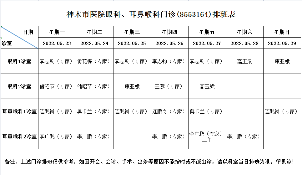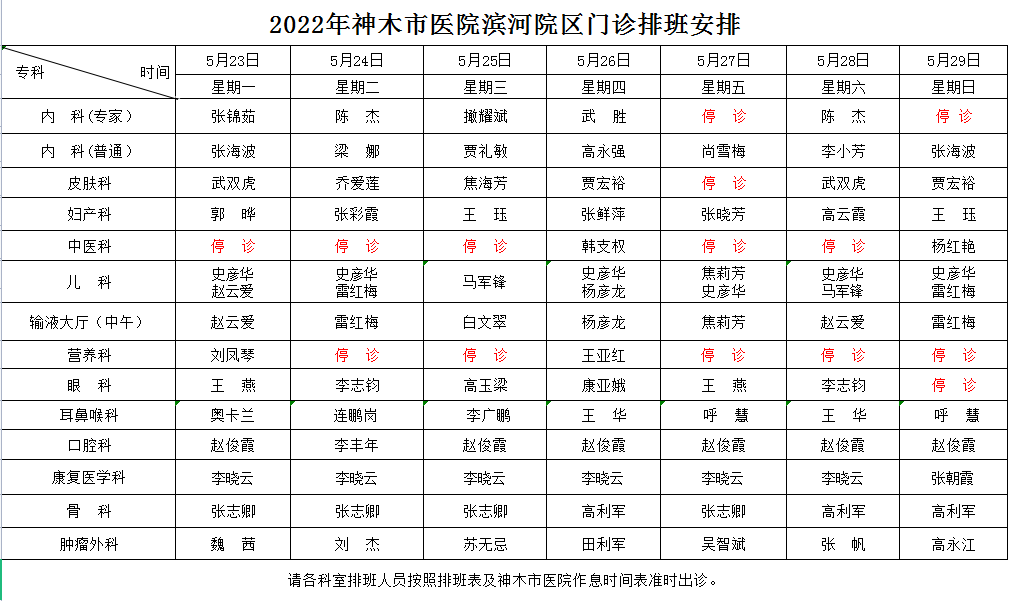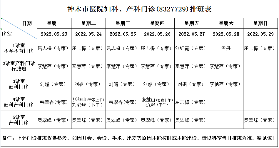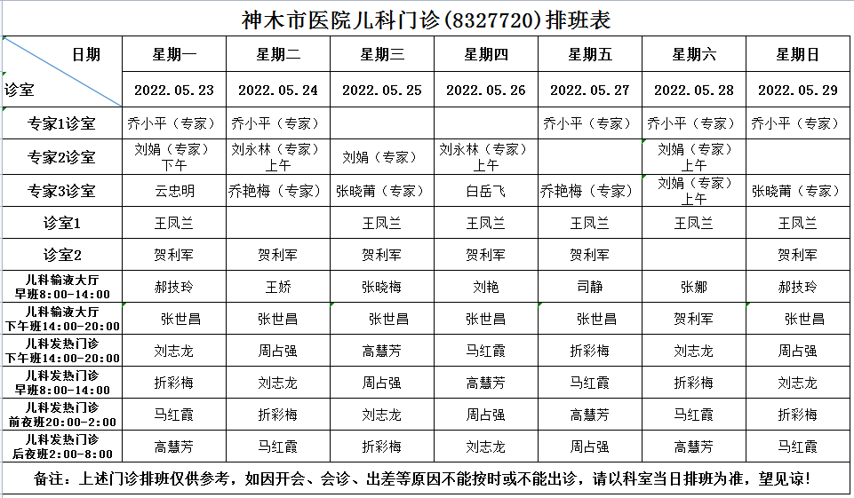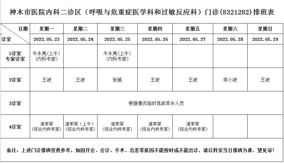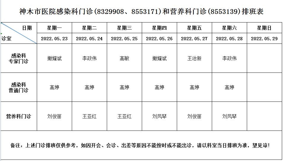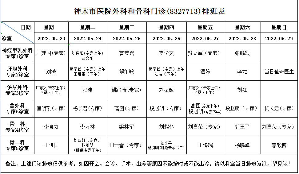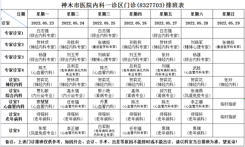 [ÿÈÕ»°Ìâ] ÉñľÊÐÒ½ÔºÃÅÕï¸÷ÕïÊÒÅŰà±í£¨2022.05.23¡ª2022.05.29£©