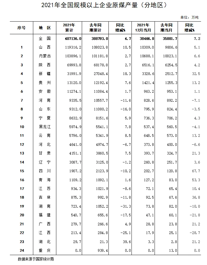 2021ÄêÓÜÁÖԭú²úÁ¿5.52ÒÚ¶Ö£¬±ÈÉÏÄêÔö³¤6.2%£¬²úÁ¿´ïµ½Àúʷиߣ»Ô­ÓÍ1094.66Íò¶Ö£¬Ôö³¤4.4%£»ÌìÈ»Æø214.15ÒÚÁ¢·½Ã×£¬Ôö³¤1.9%£»·¢µçÁ¿1448.14ÒÚǧÍßʱ£¬Ôö³¤15.2%£»¾ÛÒÒÏ©142.47Íò¶Ö£¬Ôö³¤23.0%£»¾Û±ûÏ©170.70Íò¶Ö£¬Ôö³¤29.7%¡£