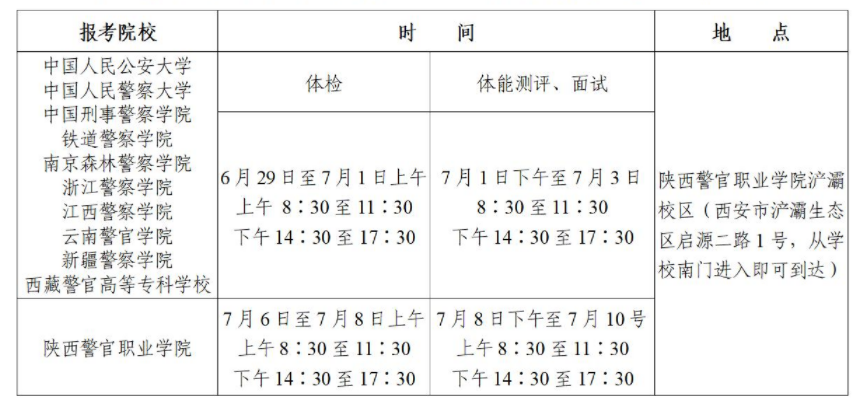 ΪִÐÐÒßÇé·À¿Ø¹æ¶¨£¬¼õÉÙÈËÔ±¾Û¼¯£¬²Î¼ÓÌå¼ìµÄ¿¼ÉúÒªÌáǰ½øÐÐÔ¤Ô¼¡£±¨¿¼¹«°²ÔºÐ£¹«°²×¨ÒµÇÒÔÚÉÂÎ÷Ê¡½ÌÓý¿¼ÊÔÔºÃÅ»§ÍøÕ¾¹«Ê¾µÄ¿¼Éú£¨ÉÂÎ÷¾¯¹ÙְҵѧԺ¹«°²×¨Òµ³ýÍ⣩ÐëÓÚ6ÔÂ28ÈÕ10¡Ã00ÖÁ22¡Ã00£¬µÇ¼ÉÂÎ÷Ê¡¹«°²ÌüÃÅ»§ÍøÕ¾É¨Ãè¶þάÂëºó°´ÒªÇóÔ¤Ô¼Ìå¼ìʱ¼ä£»±¨¿¼ÉÂÎ÷¾¯¹ÙְҵѧԺ¹«°²×¨ÒµÇÒÔÚÉÂÎ÷Ê¡½ÌÓý¿¼ÊÔÔºÃÅ»§ÍøÕ¾¹«Ê¾µÄ¿¼ÉúÐëÓÚ7ÔÂ5ÈÕ10¡Ã00ÖÁ22¡Ã00£¬µÇ¼ÉÂÎ÷Ê¡¹«°²ÌüÃÅ»§ÍøÕ¾É¨Ãè¶þάÂëºó°´ÒªÇóÔ¤Ô¼Ìå¼ìʱ¼ä¡£ÒòÒßÇéÔ­Òò£¬Î´Ô¤Ô¼¿¼Éú²»ÔÙ½øÐÐÏÖ³¡±¨Ãû¡£Ô¤Ô¼³É¹¦µÄ¿¼Éú°´Ô¤Ô¼Ê±¼ä£¬Ð¯´øµÚ¶þ´ú¾ÓÃñÉí·ÝÖ¤¡¢»§¿Ú±¾¡¢×¼¿¼Ö¤¡¢ÆÕͨ¸ß¼¶ÖÐѧ±ÏÒµÖ¤¡¢¹«°²»ú¹ØÉó²éºÏ¸ñÕþÖο¼²ì±í¡¢¡¶2022ÄêÉÂÎ÷Ê¡ÆÕͨ¸ßµÈѧУÕÐÉúÌå¼ì±í¡·£¨Óɸ÷ÏØ£¨Çø£©ÕÐÉú°ì¸ºÔðÌṩ¸´Ó¡¼þ£¬Ò»Ê½Á½·Ý£©¼°¡¶¹«°²ÔºÐ£¹«°²×¨Òµ±¾×¨¿ÆÕÐÉú»¼²¡¾­ÀúÉ걨±í¡·£¨¸½¼þ4£¬Óɱ¾ÈËÈçʵÌîд£©ÒÀ´Î½øÐÐÌå¼ì¡¢ÌåÄܲâÆÀºÍÃæÊÔ¡£Ìå¼ìµ±Ì콫²éÑ鿼Éú½¡¿µÂë¡¢Ðг̿¨ºÍ48СʱÄÚºËËáÒõÐÔÖ¤Ã÷¡£Ìå¼ìʵÐе¥ÏîÌÔÌ­£¬Ìå¼ìºÏ¸ñµÄ¿¼Éú·½¿É½øÈëÌåÄܲâÆÀºÍÃæÊÔ»·½Ú¡£Ìå¼ì¡¢ÌåÄܲâÆÀºÍÃæÊÔ¹¤×÷ÏÖ³¡ÊµÐзâ±Õʽ¹ÜÀí£¬¾ßÌåʱ¼ä¼°µØµã°²ÅÅÈçÏ£º
