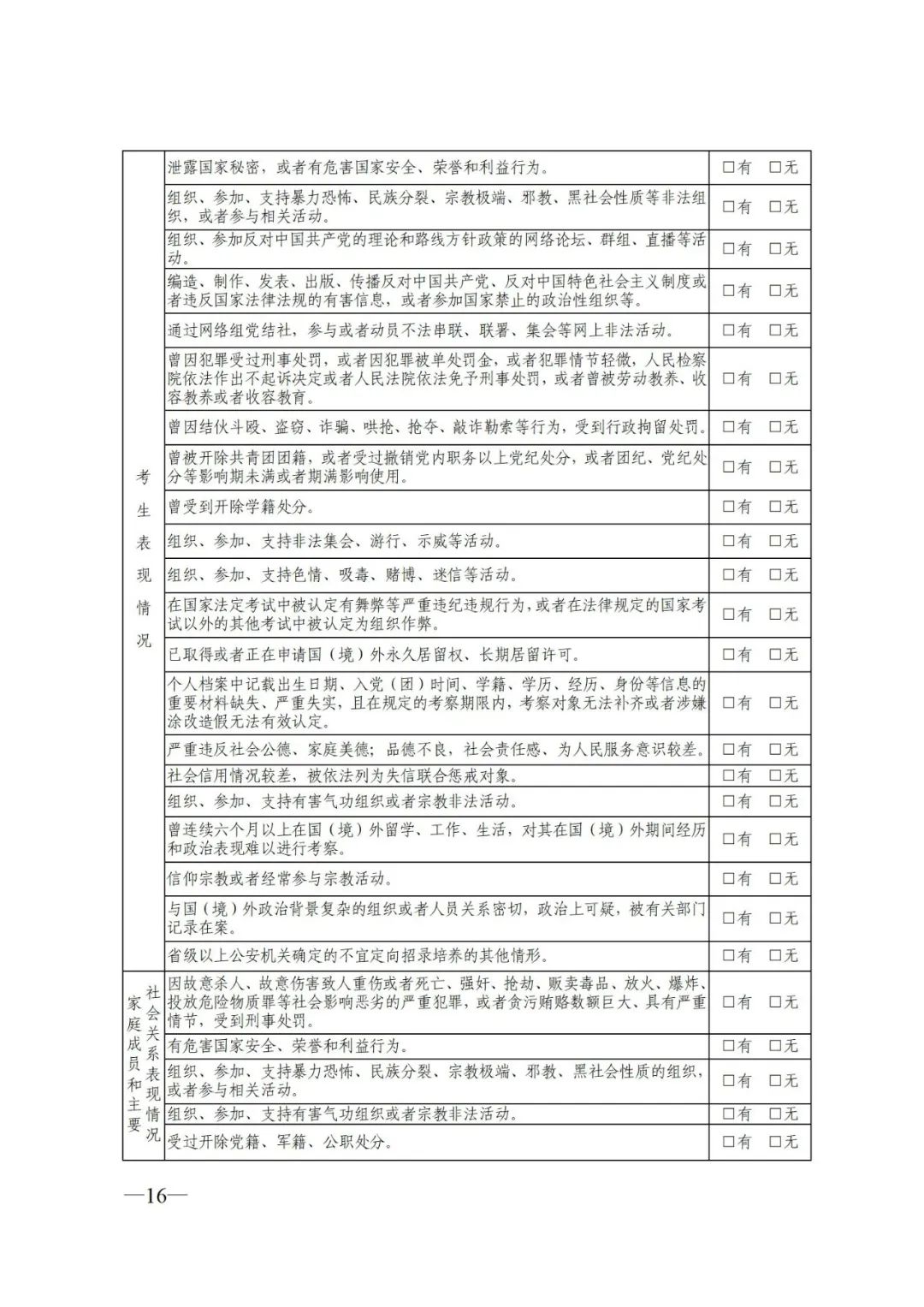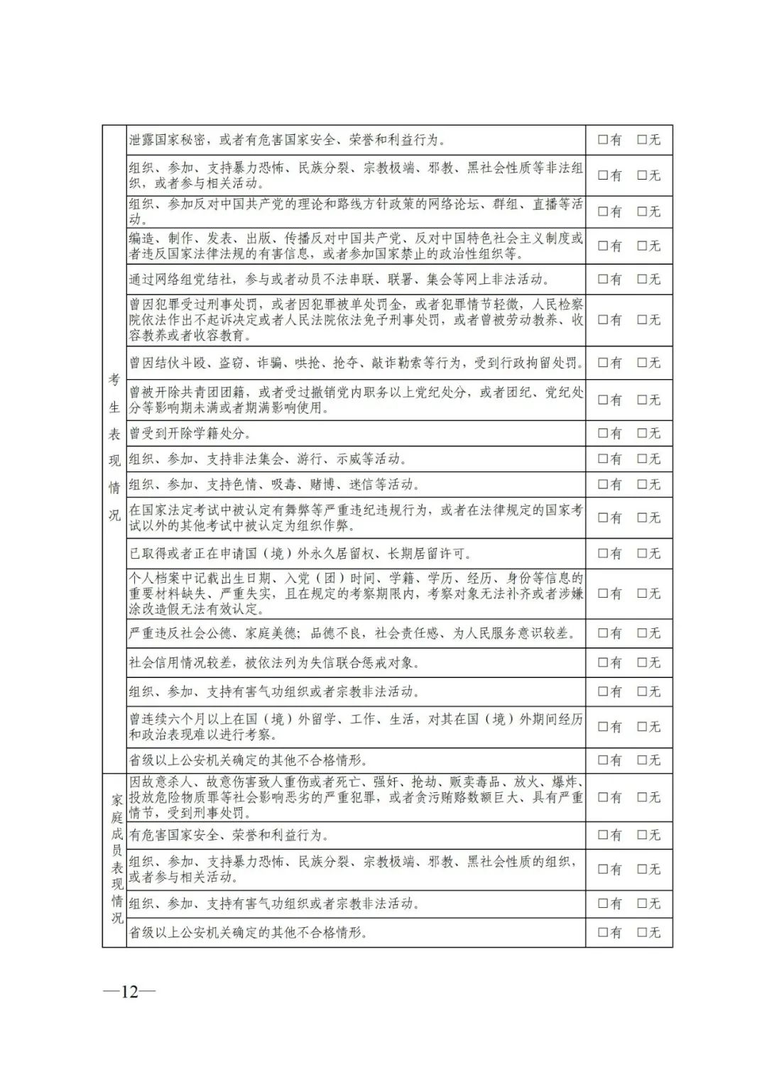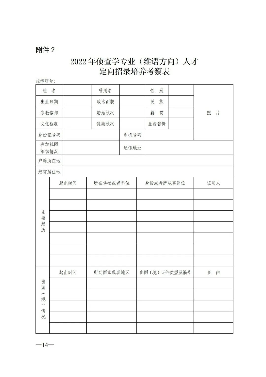 ±¨¿¼¹«°²ÔºÐ£¹«°²×¨Òµ£¨Ð½®¾¯²ìѧԺ³ýÍ⣩µÄ¿¼ÉúÐë×ÔÐÐÏÂÔØ´òÓ¡¡¶¹«°²ÔºÐ£¹«°²×¨Òµ±¾×¨¿ÆÕÐÉúÕþÖο¼²ì±í¡·£¨ÒÔϼò³Æ¿¼²ì±í£¬¼û¸½¼þ1£©£»±¨¿¼Ð½®¾¯²ìѧԺµÄ¿¼ÉúÐë×ÔÐÐÏÂÔØ´òÓ¡¡¶2022ÄêÕì²éѧרҵ£¨Î¬Óï·½Ïò£©È˲Ŷ¨ÏòÕмÅàÑø¿¼²ì±í¡·£¨¸½¼þ2£©£¬Á½±í±ØÐëÓÃA4Ö½Õý·´Á½Ãæ´òÓ¡¡£±íÖлù±¾Çé¿ö²¿·Ö¼°Ö÷Òª¾­Àú¡¢³ö¹ú£¨¾³£©Çé¿ö¡¢ÊÜ´¦·Ö»òÕßÎ¥·¨·¸×ïÇé¿ö¡¢¼ÒÍ¥³ÉÔ±Çé¿ö¡¢Ö÷ÒªÉç»á¹ØÏµÇé¿öÓÉ¿¼Éú±¾ÈËÌîд£¨²»µÃÍ¿¸Ä£©¡£¿¼Éú±¾ÈËÌîдÄÚÈÝ¡¢¿¼Éú±íÏÖÇé¿ö¡¢¼ÒÍ¥³ÉÔ±ºÍÖ÷ÒªÉç»á¹ØÏµ±íÏÖÇé¿ö£¬ÓÉ»§¼®ËùÔÚµØÅɳöËùͨ¹ýÍøÉϺ˲顢µµ°¸ÉóºË¡¢×߷õ÷²é¡¢Î¯Íе÷²éµÈ·½Ê½¿ªÕ¹¿¼²ì¹¤×÷£¬Ìá³öÕþÖο¼²ìÒâ¼û£¬Ç©×Ö²¢¼Ó¸Ç¹«Õ£¬Ïؼ¶¹«°²»ú¹Ø¸ºÔðͬ־ÔÚÕþÖο¼²ìʵʩ»ú¹Ø¸ºÔðͬ־´¦Ç©×Ö²¢¼Ó¸Ç¹«Õ¡£Êм¶¹«°²»ú¹ØÕþ¹¤²¿ÃÅÔÚÕþÖο¼²ìÉóºËÒâ¼ûÀ¸ÄÚ£¬ÌîдÕþÖο¼²ìÉóºËÒâ¼û£¬Ç©×Ö²¢¼Ó¸Ç¹«Õ¡£ÕþÖο¼²ìºÏ¸ñ¿¼ÉúµÄ¿¼²ì±íÃÜ·â½»¿¼Éú±¾ÈË£¬ÔÚÃæÊÔʱ½»Ê¡¹«°²ÌüÕþÖβ¿¡£Ê¡¹«°²ÌüÕþÖβ¿¶Ô¿¼²ìÇé¿ö½øÐзÖÎö£¬×ÛºÏ×÷³öÕþÖο¼²ì½áÂÛ¡£¸÷ÊС¢ÏØ£¨Çø£©Õа죬¸÷ÊС¢ÏØ£¨Çø£©¹«°²¾Ö£¨·Ö¾Ö£©ºÍÅɳöËù£¬Òª¸ß¶ÈÖØÊÓ±¨¿¼¹«°²ÔºÐ£¹«°²×¨Òµ¿¼ÉúµÄÕþÖο¼²ì¹¤×÷£¬ÈÏÕæ¸ºÔ𣬲»µÃŪÐé×÷¼Ù¡¢²»µÃÍÆÚᢲ»µÃÏò¿¼ÉúÊÕÈ¡ÈκηÑÓá£