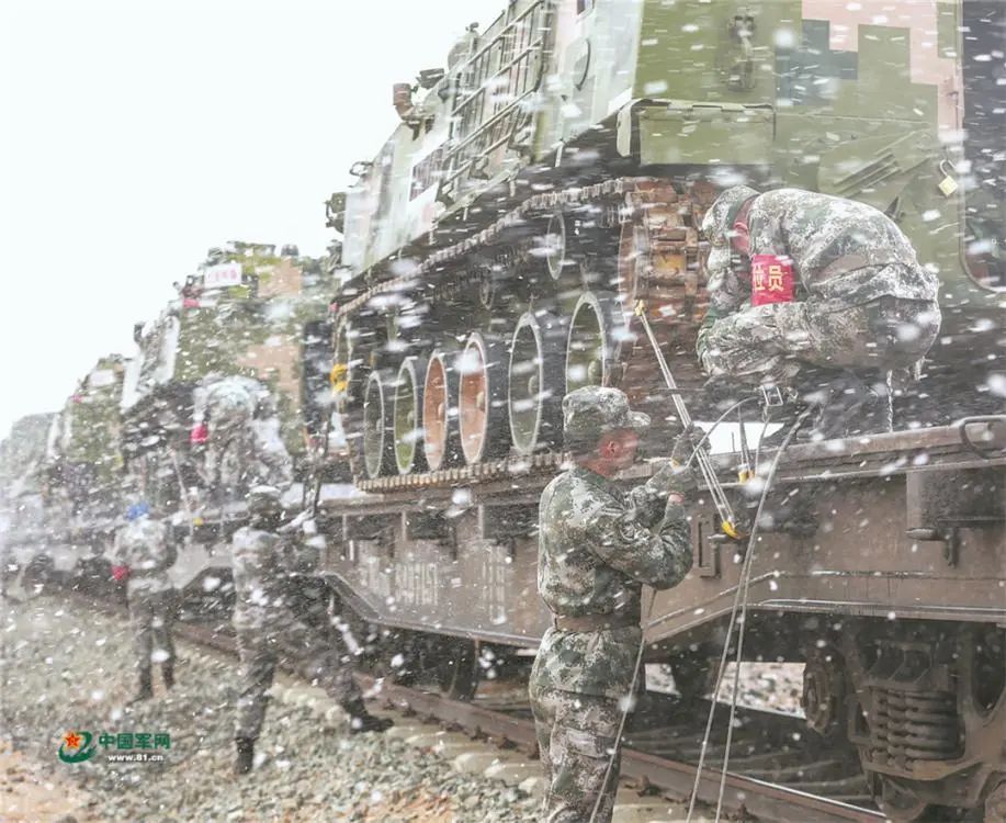 ×ÊÁÏͼ£ºÇ§Àï»ú¶¯ÖÁÑÝÁ·µØÓòºó£¬¹Ù±ø¶¥·çÃ°Ñ©Ð¶ÔØ³µÁ¾×°±¸