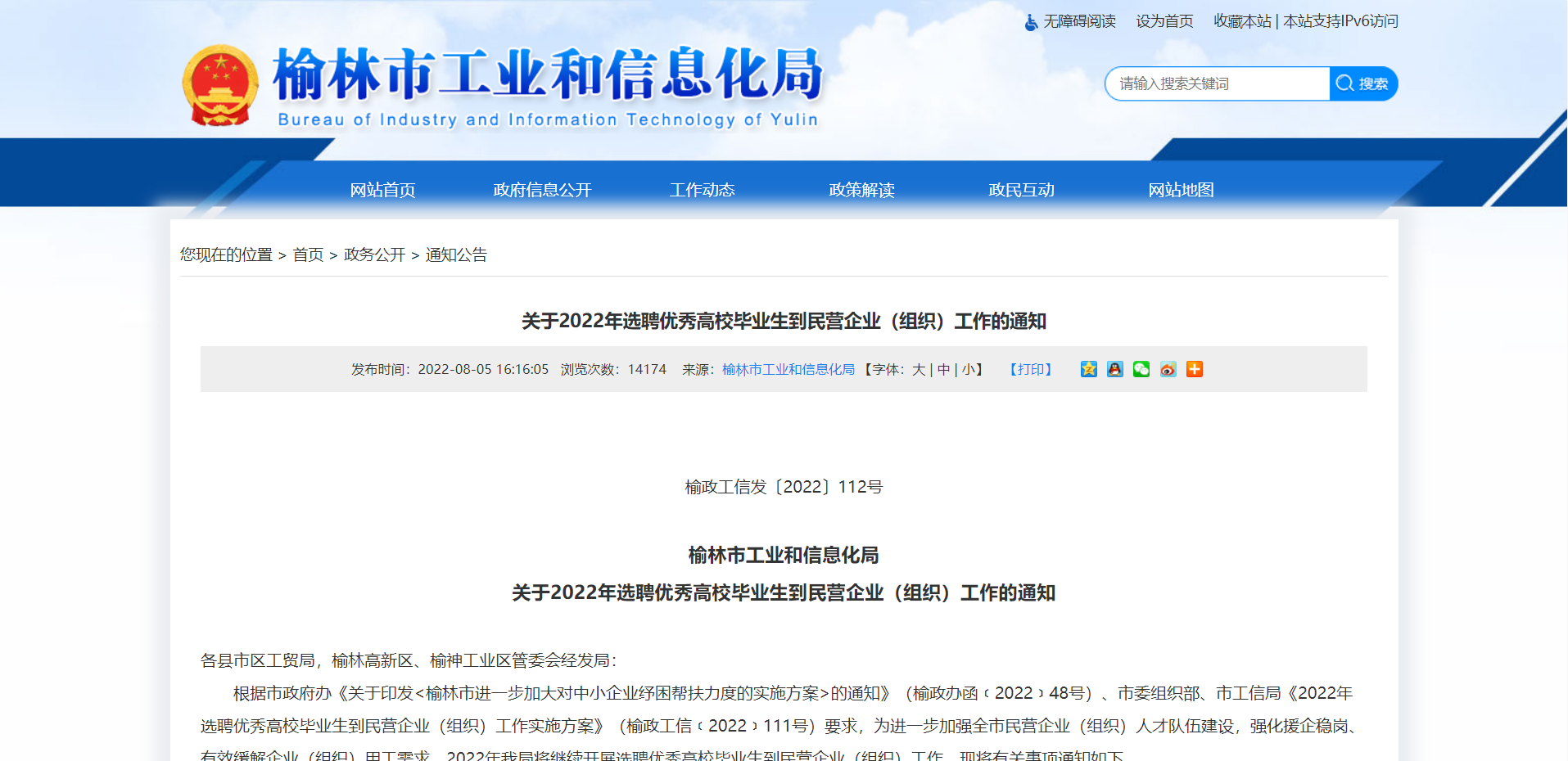 ¹ØÓÚ2022ÄêѡƸÓÅÐã¸ßУ±ÏÒµÉúµ½ÃñÓªÆóÒµ£¨×éÖ¯£©¹¤×÷µÄ֪ͨ ¸ù¾ÝÊÐÕþ¸®°ì¡¶¹ØÓÚÓ¡·¢<ÓÜÁÖÊнøÒ»²½¼Ó´ó¶ÔÖÐСÆóÒµç£À§°ï·öÁ¦¶ÈµÄʵʩ·½°¸>µÄ֪ͨ¡·£¨ÓÜÕþ°ìº¯©z2022©{48ºÅ£©¡¢ÊÐί×éÖ¯²¿¡¢Êй¤Ðž֡¶2022ÄêѡƸÓÅÐã¸ßУ±ÏÒµÉúµ½ÃñÓªÆóÒµ£¨×éÖ¯£©¹¤×÷ʵʩ·½°¸¡·£¨ÓÜÕþ¹¤ÐÅ©z2022©{111ºÅ£©ÒªÇó£¬Îª½øÒ»²½¼ÓǿȫÊÐÃñÓªÆóÒµ£¨×éÖ¯£©È˲ŶÓÎ齨É裬ǿ»¯Ô®ÆóÎȸڡ¢ÓÐЧ»º½âÆóÒµ£¨×éÖ¯£©Óù¤ÐèÇó£¬2022ÄêÎÒ¾Ö½«¼ÌÐø¿ªÕ¹Ñ¡Æ¸ÓÅÐã¸ßУ±ÏÒµÉúµ½ÃñÓªÆóÒµ£¨×éÖ¯£©¹¤×÷¡£ÏÖ½«ÓйØÊÂÏî֪ͨÈçÏ¡£ £¨Ò»£©Ñ¡Æ¸ÊýÁ¿£º500Ãû£¬ÆäÖÐ50ÃûΪȫÊз¶Î§ÄÚ½¨µµÁ¢¿¨ÍÑÆ¶»§´óѧÉú¡£ £¨¶þ£©Ñ¡Æ¸ÈËÔ±Ìõ¼þ 1.ÄêÁäΪ18ÖÜËê¼°ÒÔÉÏ£¬35ÖÜËê¼°ÒÔÏÂδ¾ÍÒµ£¨º¬¾ÍÒµºóÓÖʧҵ£©µÄÈ«ÈÕÖÆÓ¦Íù½ìר¿Æ¼°ÒÔÉÏѧÀúÕß¡£ 2.ÓÜÁÖÊл§¼®»òÓÜÁÖÉúÔ´£» 3.±ÏÒµÖ¤¡¢Ñ§Î»Ö¤ÐëÓÚѡƸǰȡµÃ£» 4.×ñÊØÏÜ·¨ºÍ·¨ÂÉ£¬¾ßÓÐÁ¼ºÃµÄÆ·ÐУ¬³ÏÐŵ£µ±£» 5.¾ßÓÐÕý³£ÂÄÐÐÖ°ÔðµÄÉíÌåÌõ¼þºÍÐÄÀíËØÖÊ£» 6.ͬµÈÌõ¼þÏ£¬½¨µµÁ¢¿¨µÄÍÑÆ¶»§¸ßУ±ÏÒµÉúÓÅÏÈѡƸ¡£ £¨Èý£©Ñ¡Æ¸ÆóÒµ£¨×éÖ¯£©Ìõ¼þ 1.ÓÜÁÖÊÐÓòÄڵǼÇ×¢²áµÄÃñÓªÆóÒµ¡¢·þÎñÃñÓª¾¼Ã·¢Õ¹µÄÉÌлἰ¸÷Àà»ú¹¹£»ÃñÓªÒ½Ôº¡¢Ãñ°ìԺУµÈ£» 2.³ÏÊµÊØÐÅ¡¢ºÏ·¨¾Óª£» 3.ÊÜйڷÎÑ×ÒßÇéÓ°Ïì½Ï´óÇÒÓù¤½ôȱµÄÆóÒµ£¨×éÖ¯£©ÎªÖصãѡƸ¶ÔÏó¡£ £¨ËÄ£©²»·ûºÏѡƸµÄÖ÷ÒªÇéÐÎ 1.ÔøÔÚѡƸÓÅÐã¸ßУ±ÏÒµÉúµ½ÃñÓªÆóÒµ£¨×éÖ¯£©¹¤×÷Öб»È϶¨ÓÐÎè±×µÈÎ¥·´Ïà¹Ø¹æ¶¨ºÍ¼ÍÂÉÐÐΪµÄÈËÔ±¡¢ÆóÒµ£¨×éÖ¯£©£» 2.ÊÂÒµµ¥Î»¹¤×÷ÈËÔ±¡¢¹«ÎñÔ±£¨º¬²ÎÕÕ¹«ÎñÔ±·¨¹ÜÀíµ¥Î»¹¤×÷ÈËÔ±£©¡¢¹«ÒæÐÔ¸Úλ¡¢ÏÖÒÛ¾üÈ˺ÍÔÚ¶ÁµÄ·Ç2022ÄêÓ¦½ì±ÏÒµÉú£» 3.ÁÐÈëʧÐÅÃûµ¥£¨ÐÐΪ£©µÄÈËÔ±¡¢ÆóÒµ£¨×éÖ¯£©£» 4.¼¾½ÚÐÔÉú²ú¾ÓªÆóÒµ£¨×éÖ¯£©£» 5.¹úÓÐÆóÒµ£¨×éÖ¯£©£» 6.·¨ÂÉ¡¢·¨¹æ¹æ¶¨²»·ûºÏ±¾´ÎѡƸҪÇóµÄÈËÔ±¡¢ÆóÒµ£¨×éÖ¯£©¡£ ѡƸ¹¤×÷ÓÉÊй¤ÐžÖǣͷ×éÖ¯£¬ÊÐÖÐСÆóÒµ·¢Õ¹·þÎñÖÐÐľßÌåʵʩ£¬¸÷ÏØÊÐÇø¹¤Ã³¾Ö£¬¸ßÐÂÇø¹Üί»á¡¢ÓÜÉñ¹¤ÒµÇø¾·¢¾Ö¸ºÔð±¾Ï½ÓòÄÚµÄѡƸ¹¤×÷£¬ÒÔÆóÒµ£¨×éÖ¯£©×ÔÖ÷ѡƸΪÖ÷¡£ ±¾Ñ¡Æ¸Í¨Öª·¢²¼ÒԺ󣬸÷ÏØÊÐÇø¹¤Ã³¾Ö£¨¾·¢¾Ö£©¼°Ê±×éÖ¯Ï½ÇøÄÚÆóÒµ£¨×éÖ¯£©¿ªÕ¹×ÔÖ÷ѡƸ¹¤×÷£¬ÔÚÍê³É³õÉóºóÉϱ¨ÊÐÖÐСÆóÒµ·¢Õ¹·þÎñÖÐÐĸ´ºË¡£ ¸÷ÏØÊÐÇø¼°¸ßÐÂÇø¹Üί»á¡¢ÓÜÉñ¹¤ÒµÇøÑ¡Æ¸Ãû¶îÖ¸±ê·ÖÅäÈçÏ£ºÓÜÑôÇø55Ãû£¬ÆäÖн¨µµÁ¢¿¨µÄÍÑÆ¶»§5Ãû£»ÉñľÊÐ40Ãû£¬ÆäÖн¨µµÁ¢¿¨µÄÍÑÆ¶»§4Ãû£»¸®¹ÈÏØ40Ãû£¬ÆäÖн¨µµÁ¢¿¨µÄÍÑÆ¶»§4Ãû£»ºáÉ½Çø40Ãû£¬ÆäÖн¨µµÁ¢¿¨µÄÍÑÆ¶»§4Ãû£»¾¸±ßÏØ35Ãû£¬ÆäÖн¨µµÁ¢¿¨µÄÍÑÆ¶»§4Ãû£»¶¨±ßÏØ35Ãû£¬ÆäÖн¨µµÁ¢¿¨µÄÍÑÆ¶»§4Ãû£»ËçµÂÏØ30Ãû£¬ÆäÖн¨µµÁ¢¿¨µÄÍÑÆ¶»§3Ãû£»Ã×Ö¬ÏØ30Ãû£¬ÆäÖн¨µµÁ¢¿¨µÄÍÑÆ¶»§3Ãû£»¼ÑÏØ30Ãû£¬ÆäÖн¨µµÁ¢¿¨µÄÍÑÆ¶»§3Ãû£»Îâ±¤ÏØ30Ãû£¬ÆäÖн¨µµÁ¢¿¨µÄÍÑÆ¶»§3Ãû£»Çå½§ÏØ30Ãû£¬ÆäÖн¨µµÁ¢¿¨µÄÍÑÆ¶»§3Ãû£»×ÓÖÞÏØ30Ãû£¬ÆäÖн¨µµÁ¢¿¨µÄÍÑÆ¶»§3Ãû£»ÓÜÁÖ¸ßÐÂÇø55Ãû£¬ÆäÖн¨µµÁ¢¿¨µÄÍÑÆ¶»§5Ãû£»ÓÜÉñ¹¤ÒµÇø20Ãû£¬ÆäÖн¨µµÁ¢¿¨µÄÍÑÆ¶»§2Ãû¡£¸ù¾Ý¸÷ÏØÊÐÇø¼°¸ßÐÂÇø¹Üί»á¡¢ÓÜÉñ¹¤ÒµÇø³õÑ¡Éϱ¨Çé¿ö£¬Êй¤ÐžֿɶÔѡƸָ±ê½øÐÐÊʵ±µ÷Õû¡£Ã¿»§ÃñÓªÆóÒµ£¨×éÖ¯£©Ñ¡Æ¸ÈËÊý²»³¬3ÈË¡£ £¨Ò»£©ÉêÇ뱨¸æ¡£Óɸ÷ÏØÊÐÇø¹¤Ã³¾Ö£¨¾·¢¾Ö£©ÒÔÕýʽÎļþÉϱ¨Ï½ÇøÄÚѡƸÇé¿ö£» £¨¶þ£©Ñ¡Æ¸ÆóÒµ£¨×éÖ¯£©ÓªÒµÖ´ÕÕ¡¢¿ª»§Ðí¿ÉÖ¤¸´Ó¡¼þ£¨¼Ó¸Ç¹«Õ£©£» £¨Èý£©Ñ¡Æ¸ÆóÒµ£¨×éÖ¯£©»ù±¾Çé¿ö½éÉÜ£¨Ðè°üº¬ÆóÒµ£¨×éÖ¯£©»ù±¾ÒµÎñ¡¢·¢Õ¹ÏÖ×´¡¢´æÔÚÎÊÌâºÍ²»×ã¡¢½ñºó·¢Õ¹¹æ»®ºÍ»ñµÃÈÙÓþµÈ£©£» £¨ËÄ£©Ñ¡Æ¸ÃñÓªÆóÒµ£¨×éÖ¯£©»ù±¾Çé¿ö±í£¨¸½¼þ1£©£» £¨Î壩ÃñÓªÆóÒµ£¨×éÖ¯£©Ñ¡Æ¸³ÐŵÊ飨¸½¼þ2£©£» £¨Áù£©ÆóÒµ£¨×éÖ¯£©ÉÏÒ»Äê¶ÈÉ󼯱¨¸æ£¨¸´Ó¡¼þ£©£¬ÆäÖÐ2022Äê×¢²á³ÉÁ¢µÄÆóÒµ£¨×éÖ¯£©²»ÐèÒªÌṩ£» £¨Æß£©ÆóÒµÓë´óѧÉúÇ©¶©µÄÀͶ¯ºÏͬ£¨¸´Ó¡¼þ²¢¼Ó¸Ç¹«Õ£©£¬ºÏͬÆÚΪÈýÄê¡£ £¨°Ë£©Ñ¡Æ¸´óѧÉú¼òÀú£» £¨¾Å£©Ñ¡Æ¸´óѧÉú±ÏÒµÖ¤¡¢Ñ§Î»Ö¤¡¢»§¿Ú±¾¡¢Éí·ÝÖ¤¸´Ó¡¼þ£» £¨Ê®£©2022ÄêѡƸ´óѧÉú³ÐŵÊ飨¸½¼þ3£©£» £¨Ê®Ò»£©2022ÄêѡƸÓÅÐã¸ßУ±ÏÒµÉúµ½ÃñÓªÆóÒµ£¨×éÖ¯£©¹¤×÷»ã×Ü±í£¨¸½¼þ4£©£» £¨Ê®¶þ£©Ñ¡Æ¸´óѧÉúΪ½¨µµÁ¢¿¨ÍÑÆ¶»§µÄ£¬ÐèÏç´åÕñÐ˲¿Ãųö¾ß½¨µµÁ¢¿¨ÍÑÆ¶»§Éí·ÝÖ¤Ã÷¡£ ÒÔÉÏÉ걨×ÊÁÏһʽÁ½·Ý£¬ÒÔÉ걨ÆóÒµ£¨×éÖ¯£©Îªµ¥Î»°´ÒÔÉÏ˳ÐòÕûÀí³É²á¡£ ѡƸÆóÒµ£¨×é