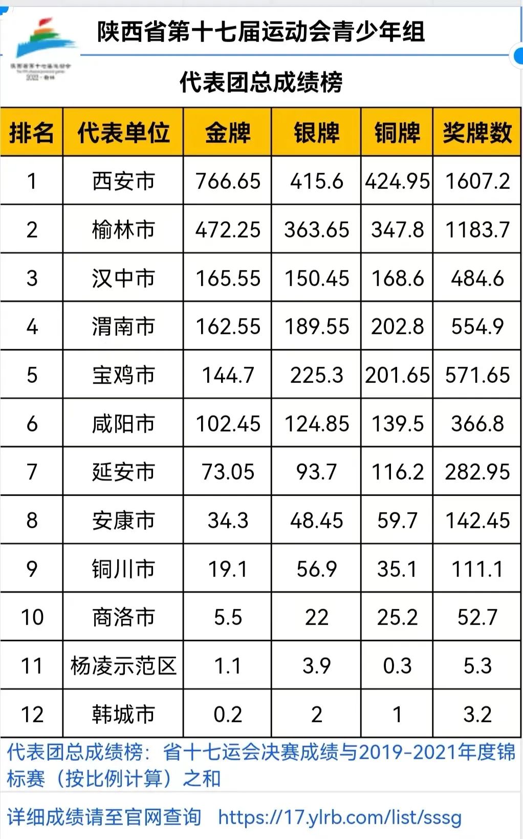 8ÔÂ10ÈÕ£¬Ê¡Ê®ÆßÔËÇàÉÙÄê×éÌï¾¶ÏîĿԲÂúÊÕ¹Ù¡£±¾½ìÊ¡ÔË»áÇàÉÙÄê×éÌï¾¶Éè30¸ö¾ºÈüÏîÄ¿£¬¹²²úÉú115ö½ðÅÆ£¬ÆäÖУ¬Î÷°²¶Ó»ñµÃ 53ö£¬ÓÜÁÖ¶Ó»ñµÃ33ö½ðÅÆ£¬ººÖжӻñµÃ21ö£¬ÏÌÑô¶Ó13ö£¬±¦¼¦¶Ó11ö£¬°²¿µ¶Ó8ö£¬ÑÓ°²¶Ó4ö£¬Í­´¨¶Ó1ö¡£