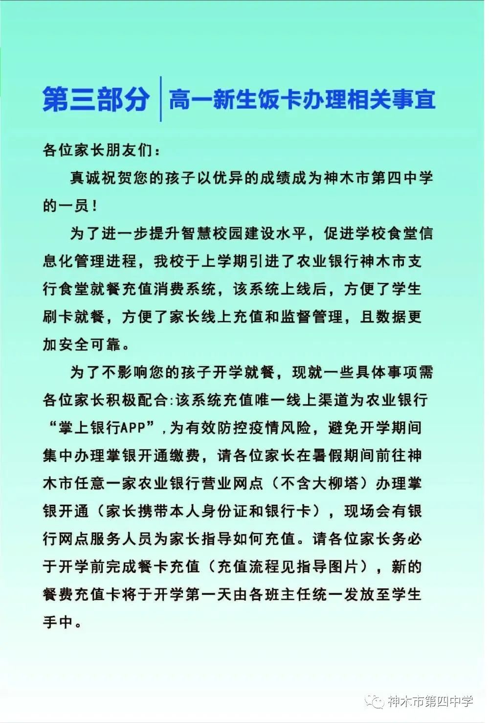 ¸ßÒ»ÐÂÉú¼Ò³¤ÓÚ 8 Ô 20 ÈÕǰ³Ö¼Ò³¤Éí·Ý֤ȥÉñľÊÐÅ©ÐÐÈÎÒâÍøµã°ìÀíÅ©ÐÐÕÆÒøAPP °ó¶¨Ñ§Éú²Í¿¨£¨ÐèѧÉúÐÕÃû¼°Éí·ÝÖ¤ºÅÂ룩£¬ÒԱ㿪ѧºó¼Ò³¤Í¨¹ýÔÚÅ©ÐÐÕÆÒøÉϸøÑ§Éú²Í¿¨³äÖµ£¨·¹¿¨ÒѰìÀí£¬ÒÑÓÉѧУ´ú³äÈë½ð¶î 200 Ôª£¬Ëæºóͨ¹ý°à¼¶Êսɡ££©